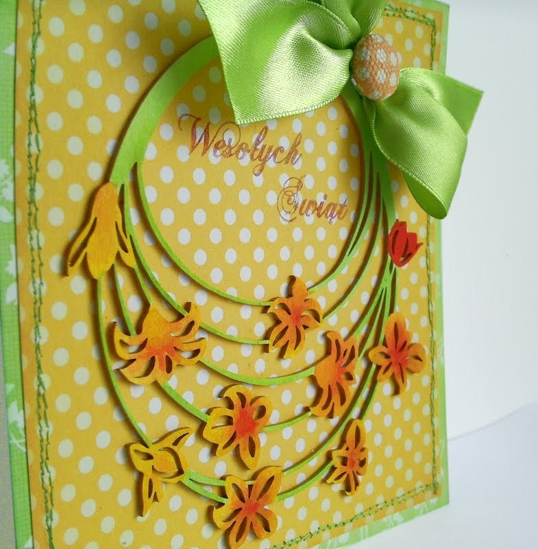 Tekturkę pomalowałam farbami akwarelowymi cieniując na żółto czerwono kwiaty.