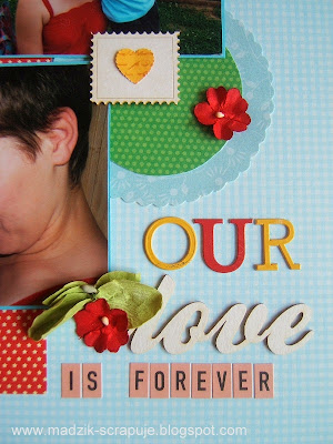 Znajdziecie tu znaczki i napis love - z CraftFun. Niczym ich nie potraktowałam tym razem. Takie pasowały mi najbardziej ;o)